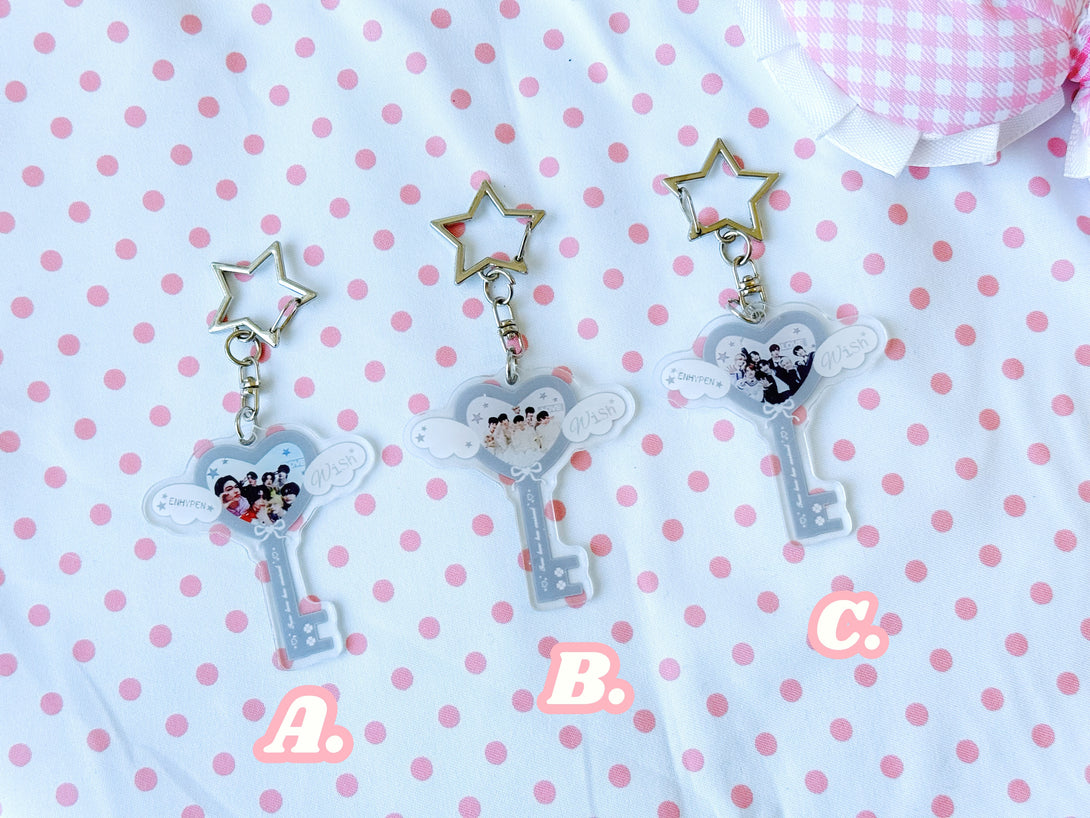 Bring a dreamy touch to your collection with these ENHYPEN fanmade acrylic keychains! The Pink Little House design captures cozy vibes with a pastel home-shaped charm, while the Heart Key design (two variations) features a magical key shape with a group photo inside a cloud and star theme. Both styles are lightweight, sturdy, and perfect for decorating your bag, pouch, or lightstick.